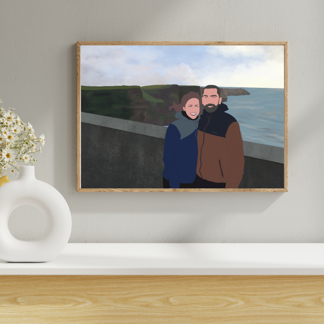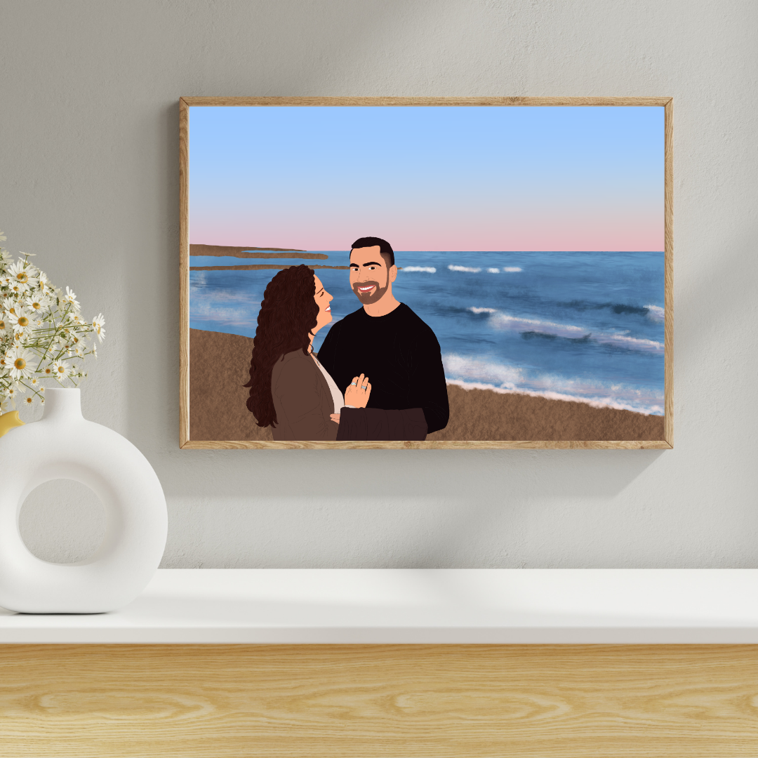 DIGITAL DOWNLOAD – Digital Minimalist Portrait with detailed background, Personalised Gift, Custom, Anniversary Gift…